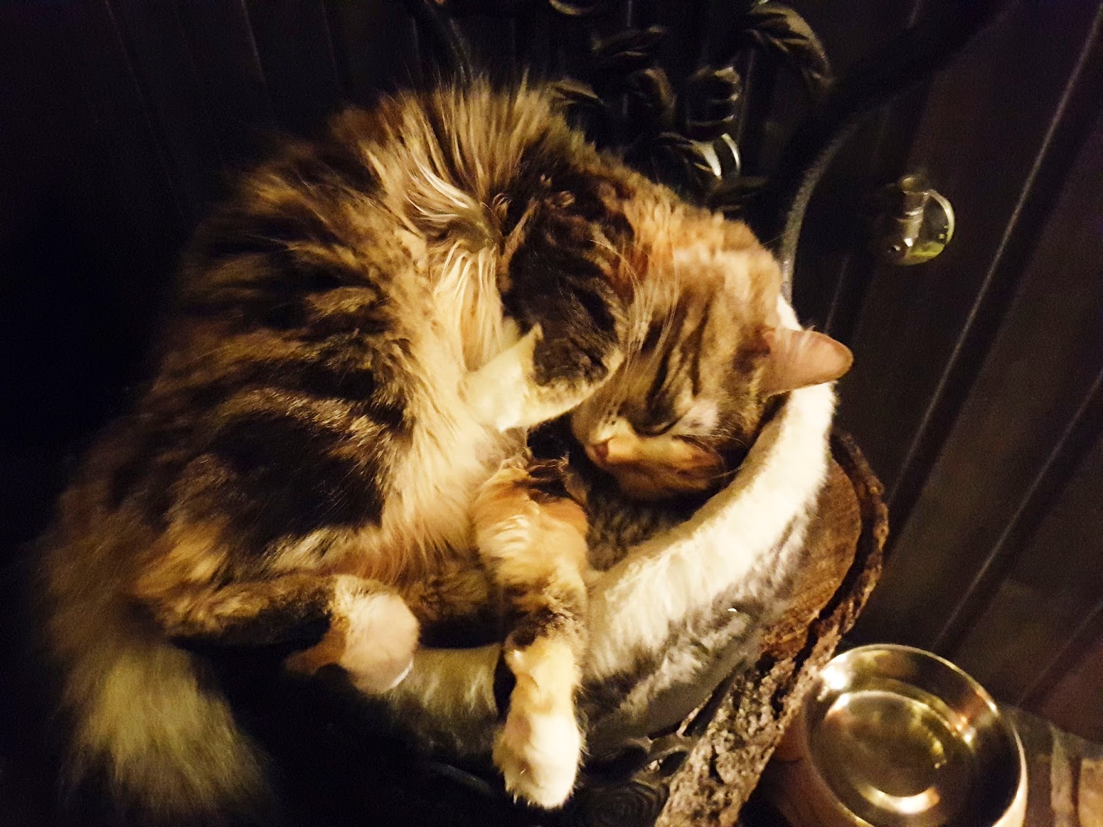 | Muiden nukkuessa Tyylilyyli oli toiminut silityskissana. Selvästi kyseessä oli vuoronvaihto. Kuitenkaan pian tuosta Tyylilyyli ei malttanut enää olla osallistumatta leikkeihin. |